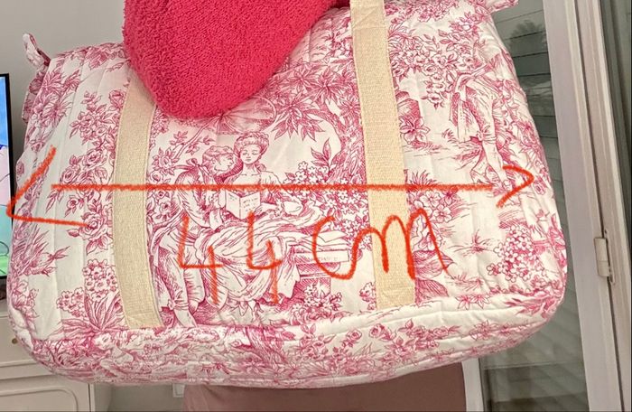 Sac à langer en coton toile de jouy lavable. Avec trousse. Assez grand capacité.