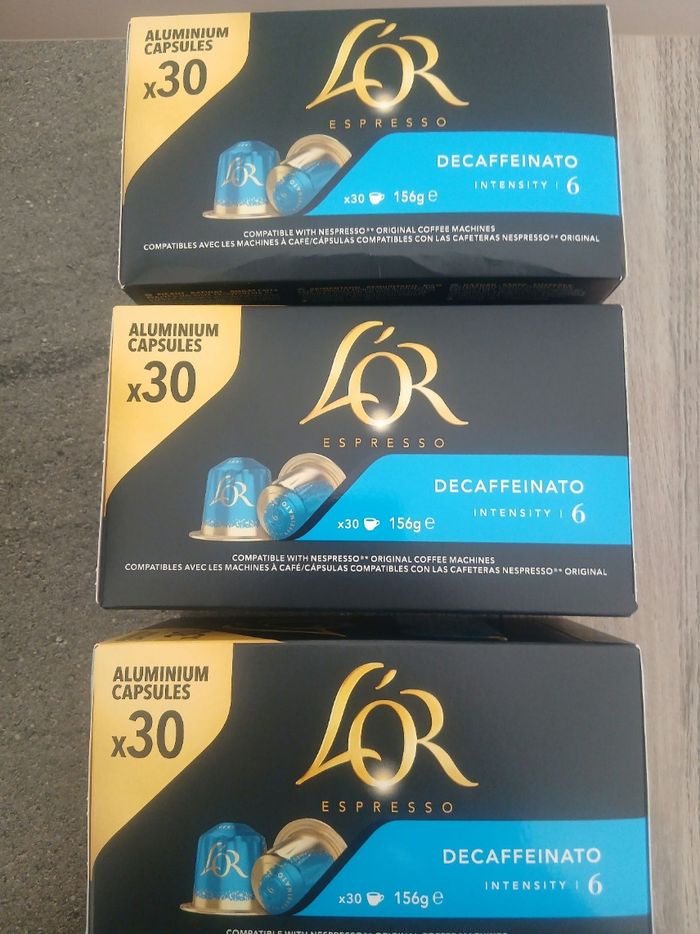 Lot de 3 boîtes de 30 capsules l or Nespresso Décaféiné Date expiration 12/11/2026