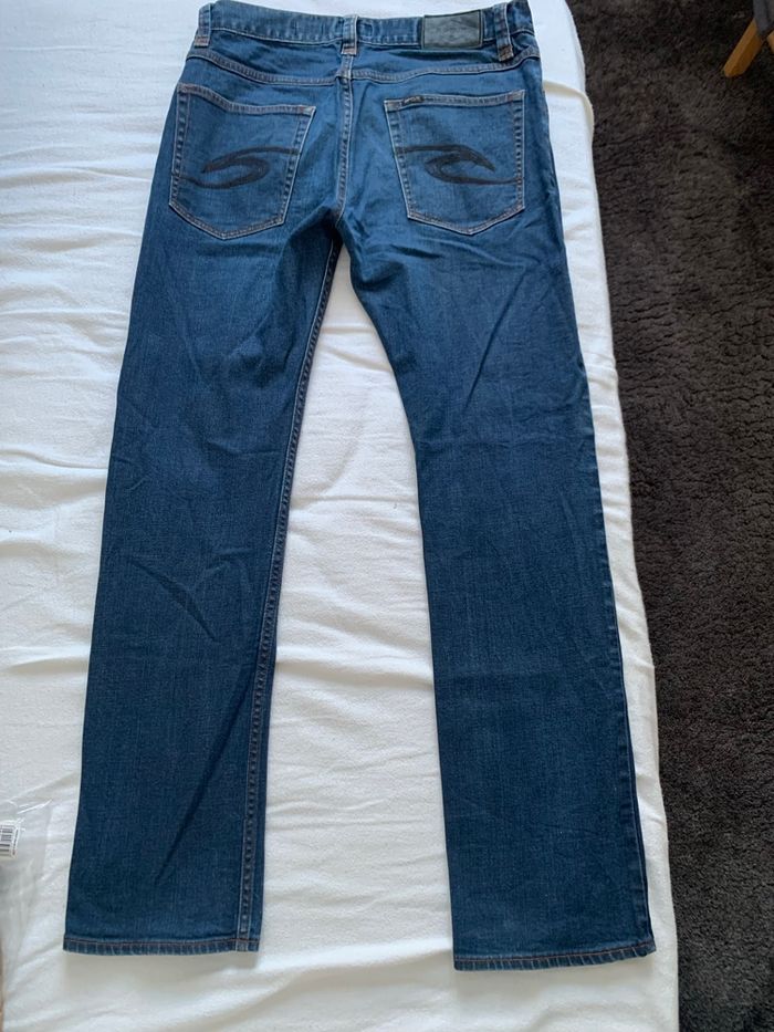 Jean bleu brut, coupe droite, taille 42 de chez Rip Curl, peu porté