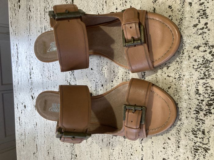 Chaussure de la marque SPM, l'article est neuf, sans étiquette. Couleur : Cognac. Taille : 37 Hauteur du talon : 7 cm. Acheté au prix de 69,99 € sur Internet . Prix de vente : 25 €. Pourquoi je vends : Le talon est trop haut, je n'arrive pas à marcher avec. De plus, je me sens serrée dedans, mes pieds sont larges. J'ai laissé passer la date de renvoi possible donc je ne peux pas me faire rembourser. Envoi possible. Lot possible.