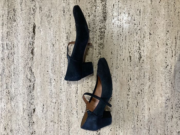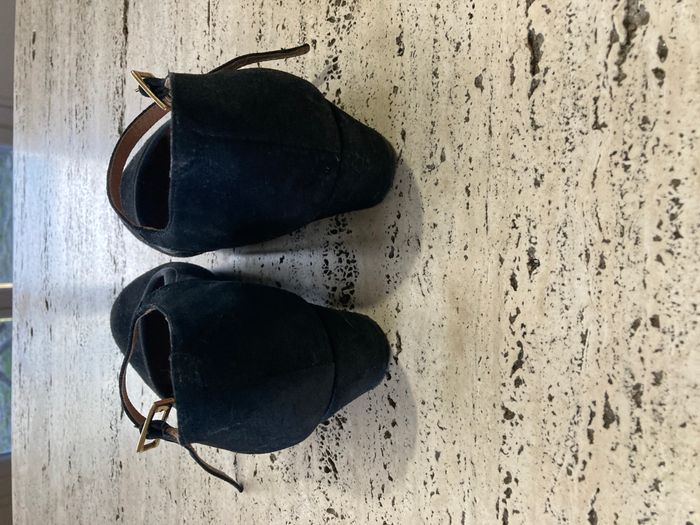 Chaussure de la marque San Marina, l'article est en très bon état. Couleur : Noir. Taille : 36 Hauteur du talon : 3,5 cm Acheté au prix de 59,99 € chez San Marina . Prix de vente : 20 €. Pourquoi je vends : Je les ai porté deux fois pour deux mariages. Mes pieds sont trop larges pour garder ces chaussures toute une soirée, je préfère qu'une autre en profite car je ne me sens pas à l'aise dedans. Envoi possible. Lot possible.
