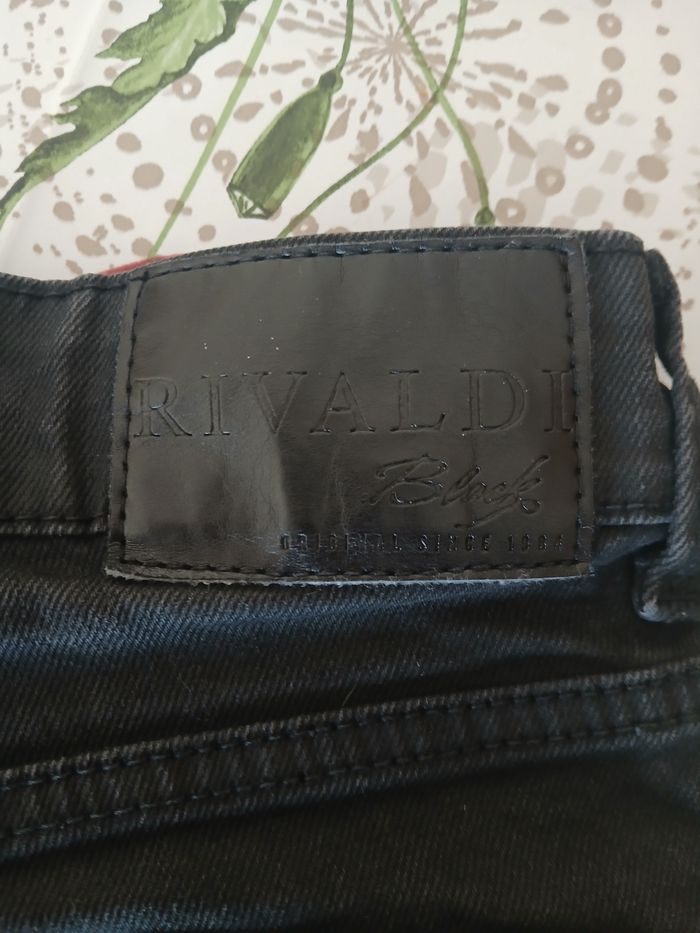 Jeans rivaldi noir en bonne état, il est slim dc pour jambe fine , s est un 38 , petit je dirais . Il est propre , pas abîmé.