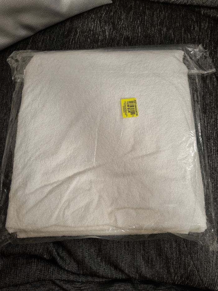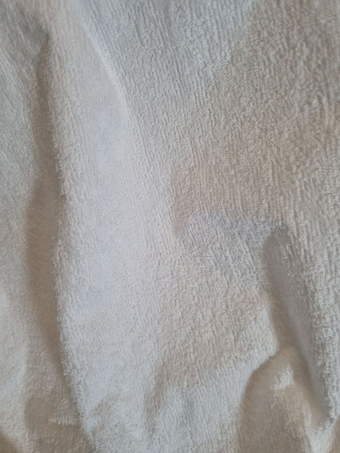 Pour matelas de 160x200 cm. Blanc. En polyester et le dessous est plastifié. A été déballé mais non utilisé pour le montrer à une potentielle acheteuse. Le contact est très doux. Ideal pour les personnes qui louent leur logement par exemple.