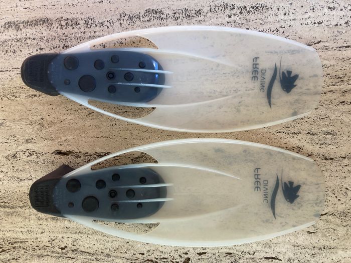 Palmes de la marque Décathlon, l'article est en bon état. Couleur : blanches et noires. Taille : 37 Acheté au prix de 19,99 € chez 0 . Prix de vente : 5 €. Envoi possible, lot possible.