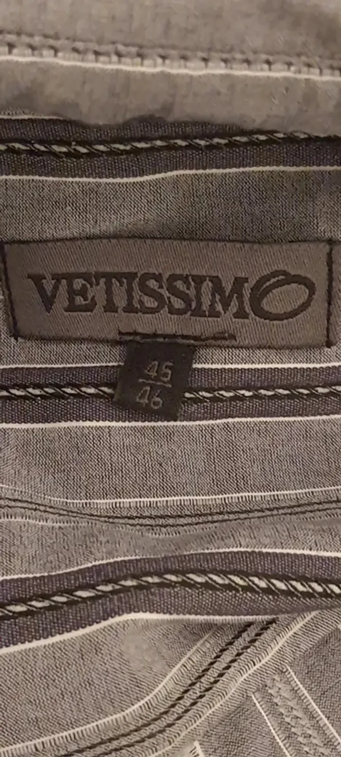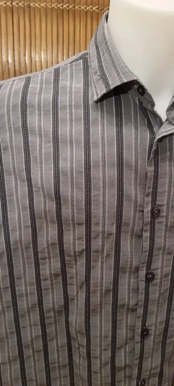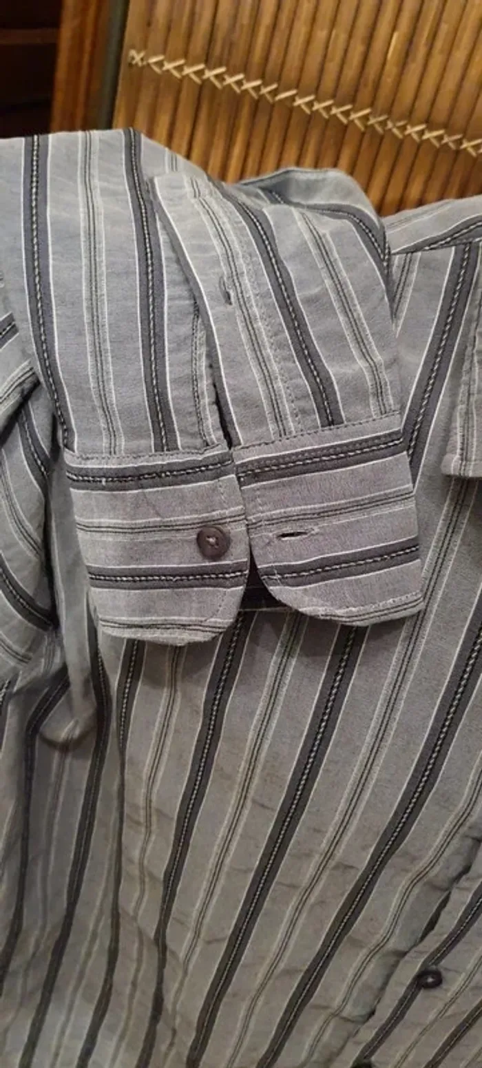 Chemise homme GEMO, grise et noir Taille 3XL, 2 boutons de rechange Dimensions à plat: épaule 52 cm., sous aisselle 70 cm., hauteur 86 cm.
