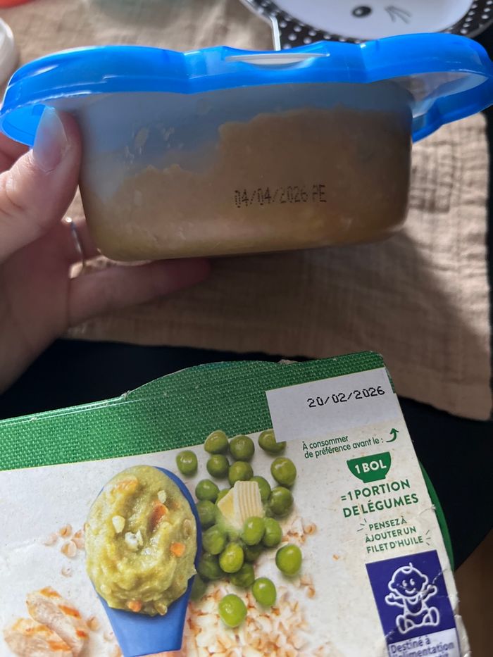 - 1 Blédichef mijoté de légumes fondants et cabillaud - 2 pots Blédina petits pois, boulghour et poulet Date en photo