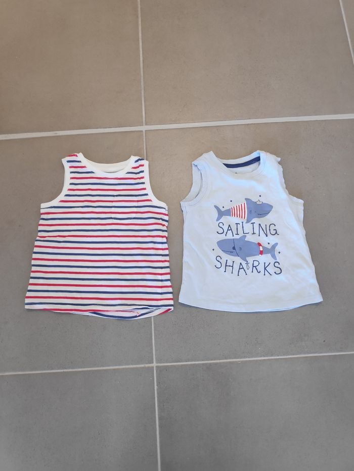Lot de 2 t-shirts sans manche de taille 9 mois.