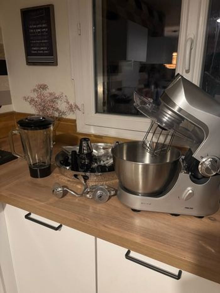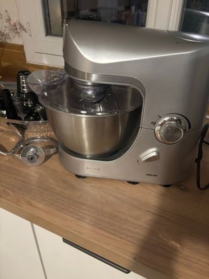 À vendre robot pâtissier Proline. Multifonctions : hachoirs, blender, râpe, tranche, pétri, mélange, bat … Fonctionne correctement, peu servi