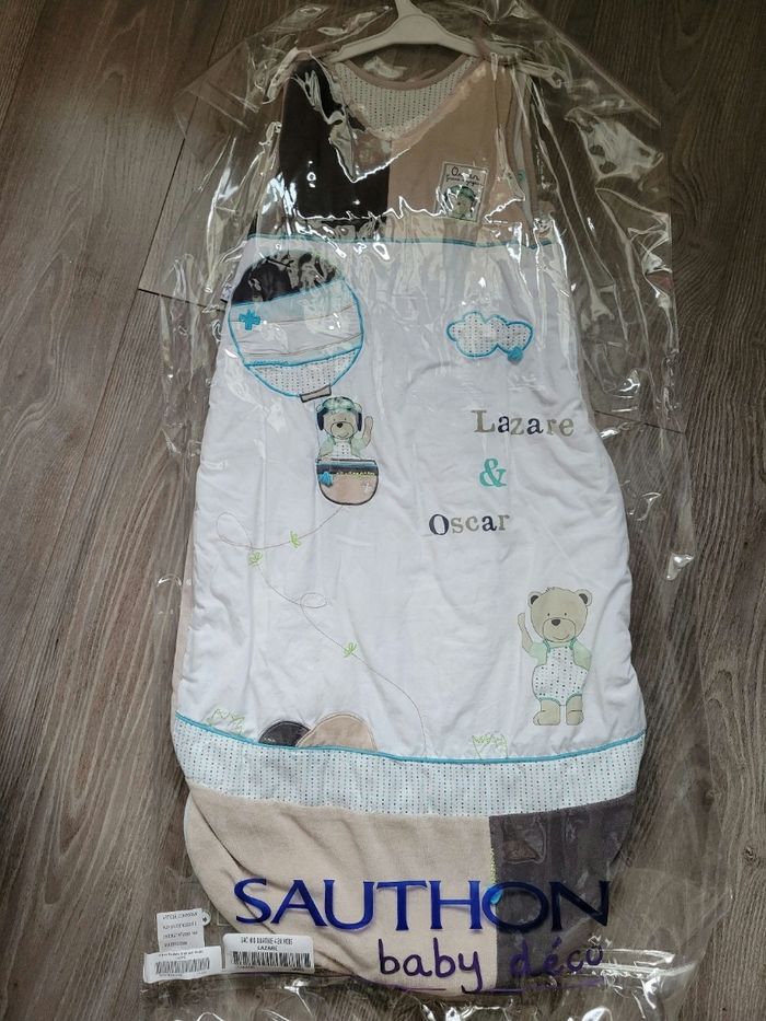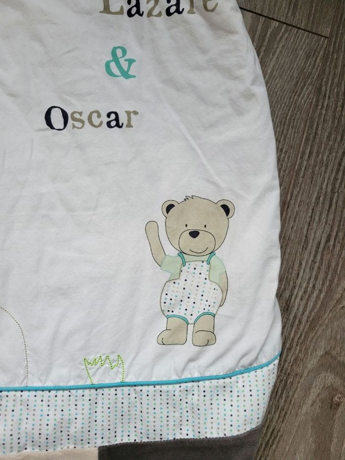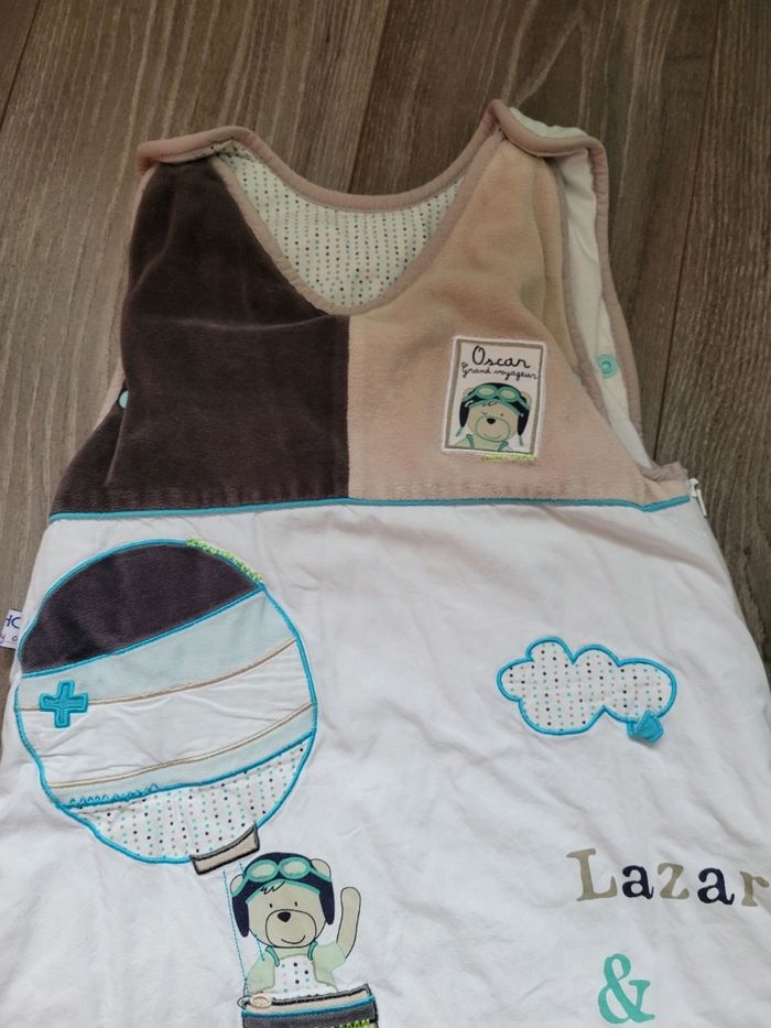 Très belle gigoteuse Épaisse Se raccourcit avec les pressions à l'arrière Très bon état Avec housse de rangement Thème "Lazare & Oscar"