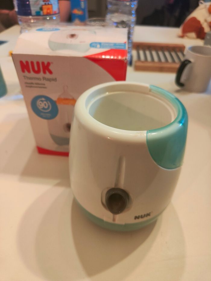 Vends lot complet pour l'allaitement et la conservation du lait, comprenant : ​Tire-lait Momcozy S12 Pro : Double pompage, électrique et sans fil. Bon état de fonctionnement. Vendu avec 2 valves neuves supplémentaires. À noter : une des coques présente un défaut esthétique (voir photo) qui ne gêne en rien le tirage ni l'étanchéité. ​Récupérateur de lait Elvie Curve : En silicone, format mains libres. ​Conservation : 9 pots Philips Avent (180 ml) avec couvercles + 2 biberons Medela (150 ml). ​Consommables : 45 sachets de conservation de lait maternel Momcozy (neufs). ​Chauffe-biberon : Marque Nuk. ​État général : L'ensemble a été utilisé et entretenu. Les éléments peuvent comporter des traces d'utilisation et des traces de calcaire liées à mon eau, ce qui n'altère pas leur usage.