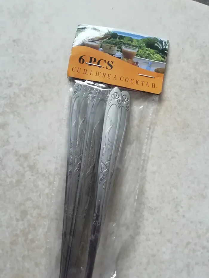 Lot de 6 longues petites cuillères à cocktail, glace.. Neuves - photo numéro 1