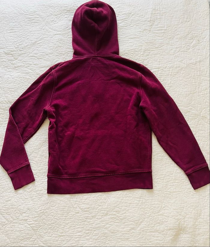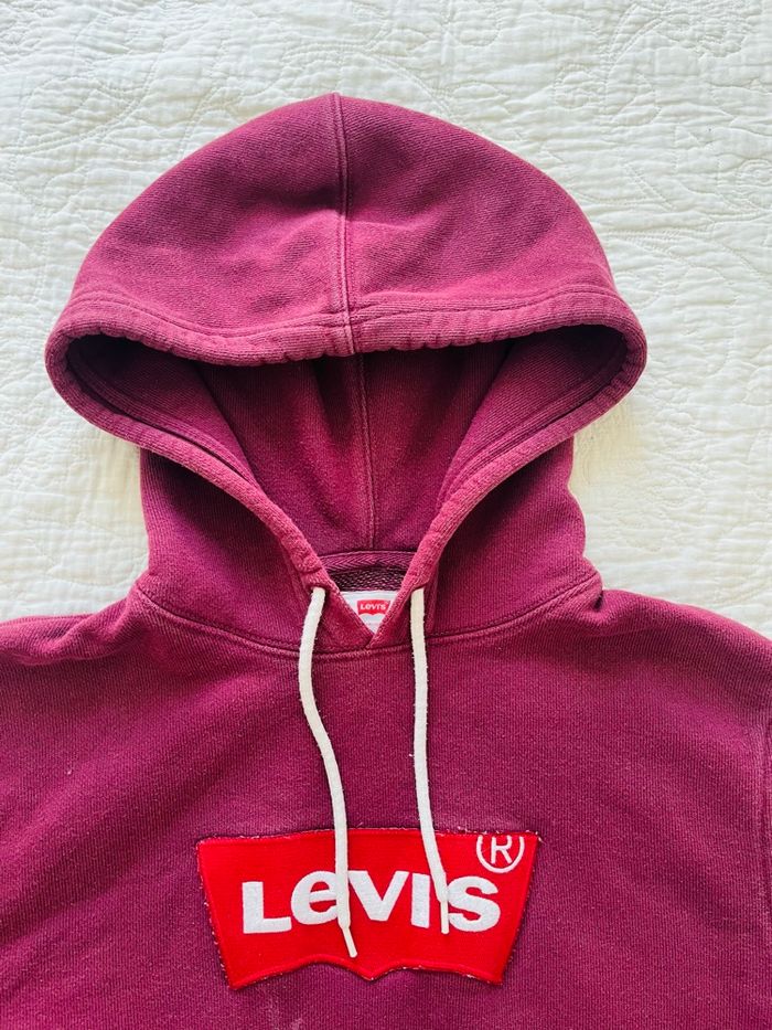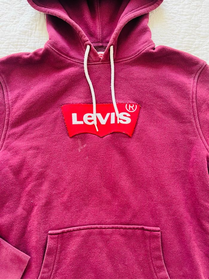 Sweat à capuche Levi’s original, coloris bordeaux, avec logo Levi’s rouge emblématique sur le devant. Modèle confortable et intemporel, idéal pour un look décontracté au quotidien. Coupe classique, avec poche kangourou et cordons de serrage à la capuche. 📏 Taille : M 🏷️ Marque : Levi’s 🎨 Couleur : Bordeaux 📦 État : Bon état général ⚠️ À noter : petite tache blanche sur le devant (visible sur les photos), n’altère pas le confort du sweat. Convient aussi bien pour homme que femme selon les goûts et la coupe souhaitée.