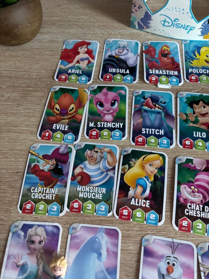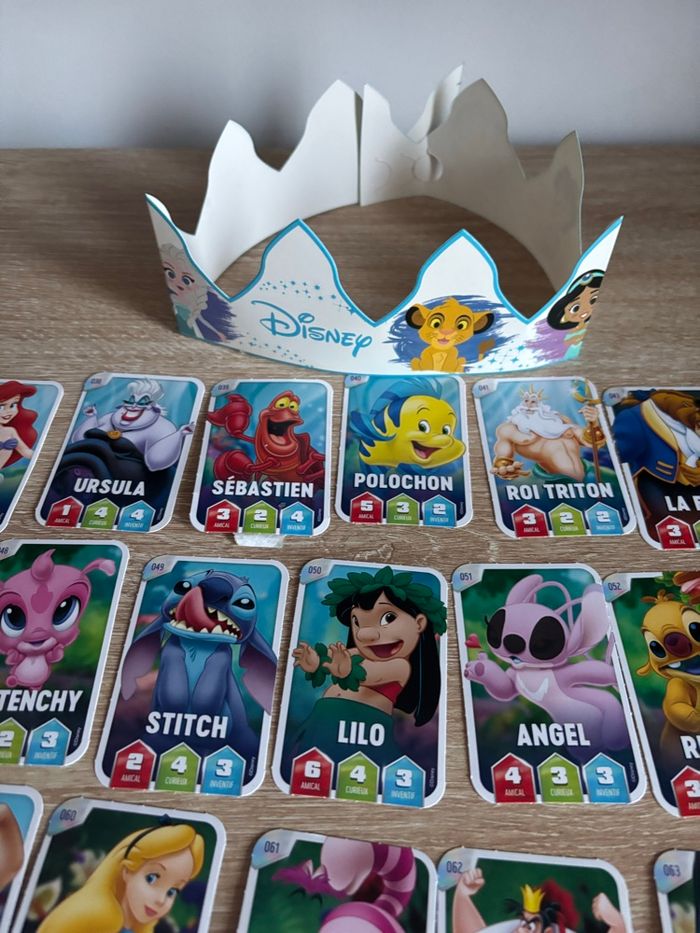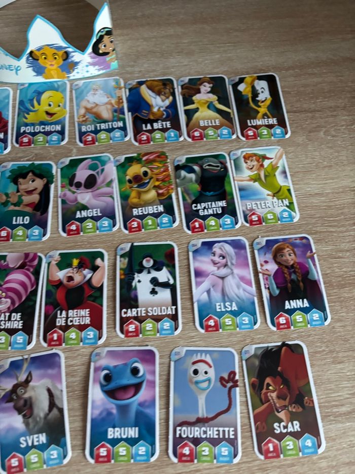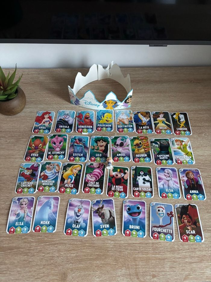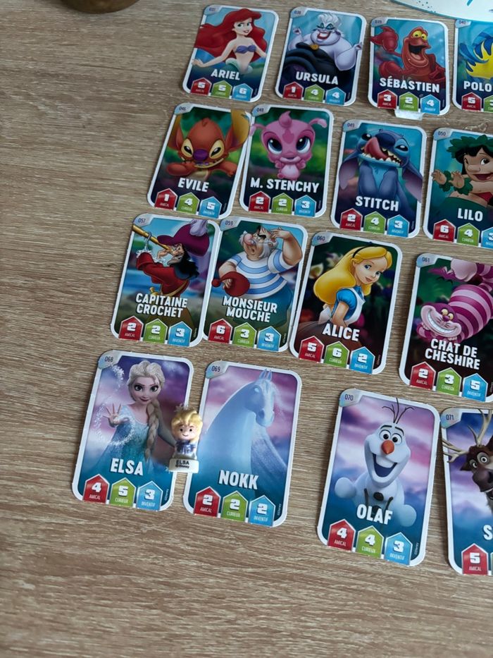 Petit lot fève Disney Elsa avec couronne et cartes Disney Leclerc D’autres fèves dans mon dressing et d’autres cartes si besoin.