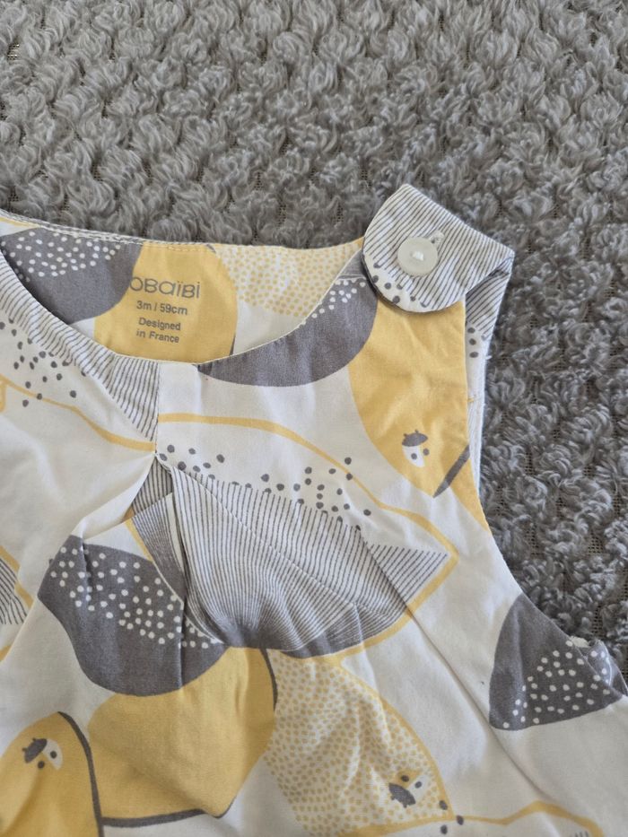 #3moisfille_tatianaalena Jolie robe grise et jaune Marque : Obaibi Taille 📏 : 3 mois État 🏷️: Tres bon état Couleur 🎨 : Gris / Jaune
