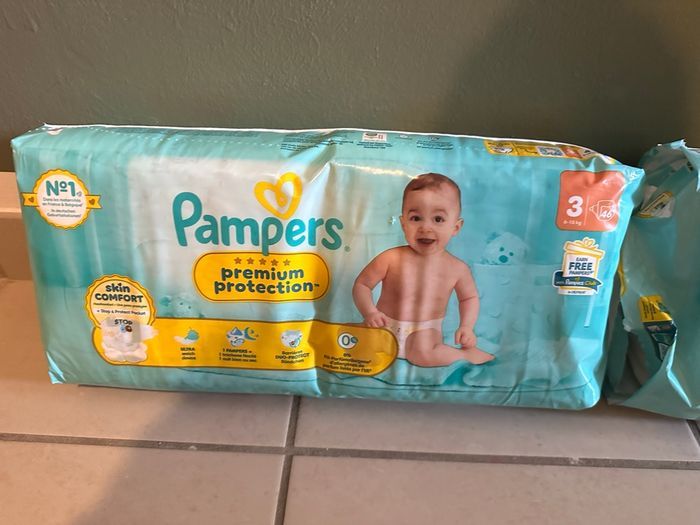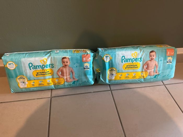 Bonjour Je met en vente deux paquets de couche Pampers taille 3, un paquet est neuf et le deuxième paquets est ouvert il manque deux couches dedans. Je les met en vente car mon fils ne les supporte pas. Prix unitaire en magasin 17,47€