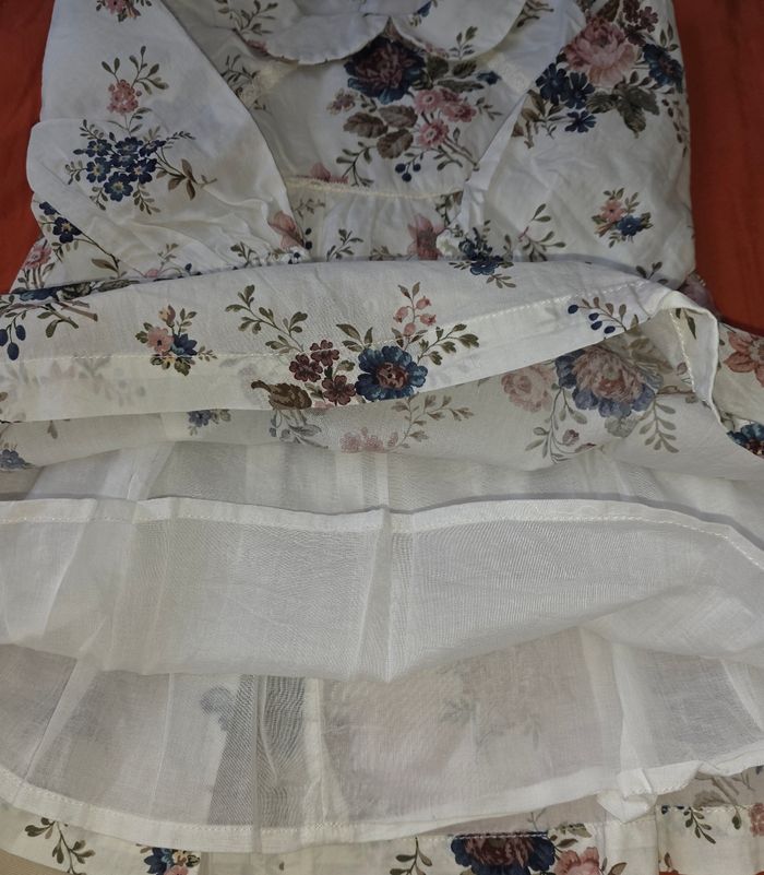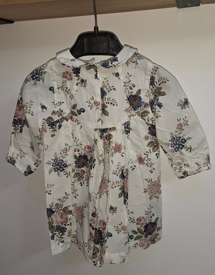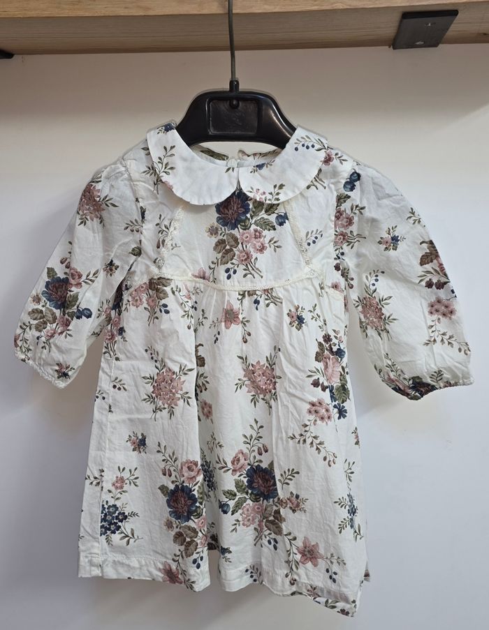 Robe a manche longue, doublure intérieure. Couleur blanc cassé a imprimés fleurie. Marque tartine et chocolat en 1 an. Porté une fois pour photos. Remises sur lots activé ✅️ De plus, moins de frais de livraison 🪙📦 Envois rapide et soigné ! 🚚