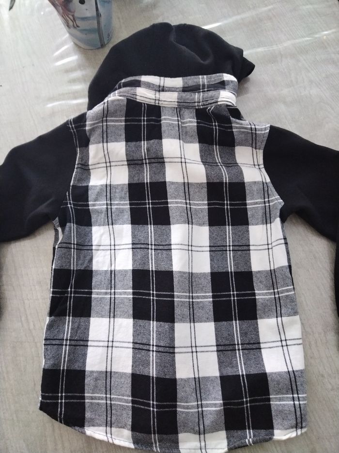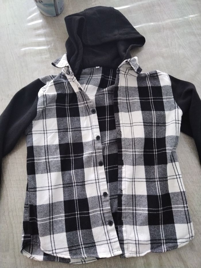Chemise à capuche noir et blanc en très bon état. Taille 8 ans.