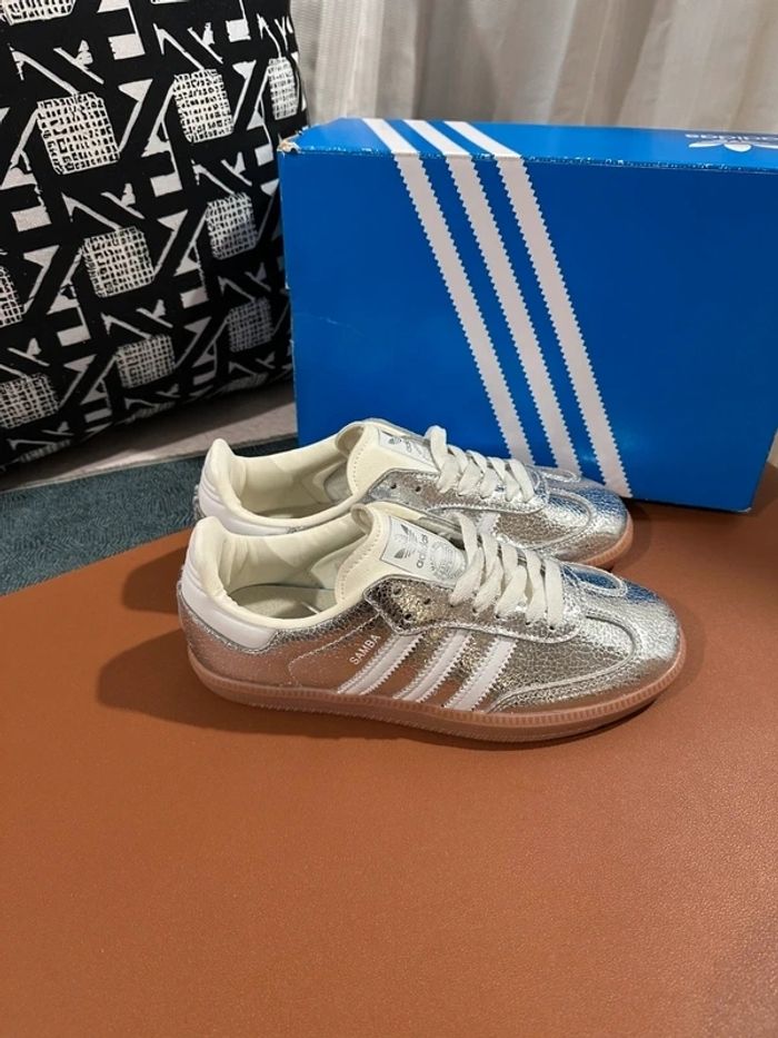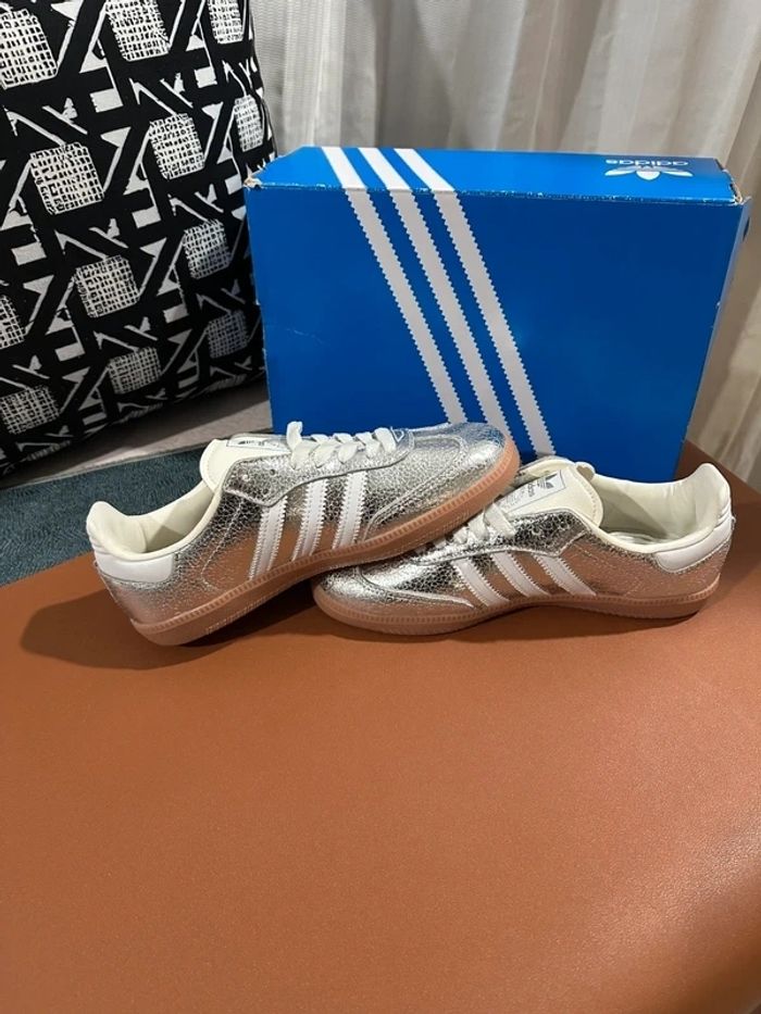 Baskets Adidas Samba OG en cuir métallisé argenté craquelé  38 - photo numéro 1
