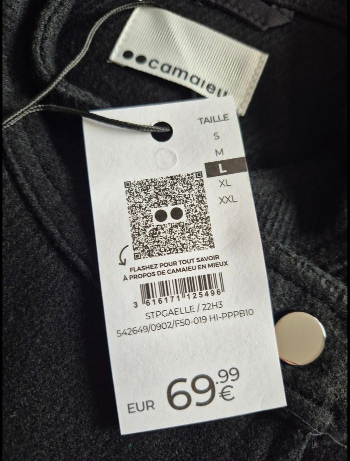 🧥 Blouson Noir avec Boutons à Pressions 🔎 Taille L 📏 Longueur de l'épaule au bas du manteau : environ 60 cm 💠 65% Polyester, 13% Acrylique, 8% Viscose, 7% Laine, 5% Polyamide, 2% Coton 🏷 Etat neuf avec étiquette, sous blister 🚚 Envoi Rapide et Soigné