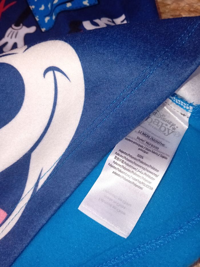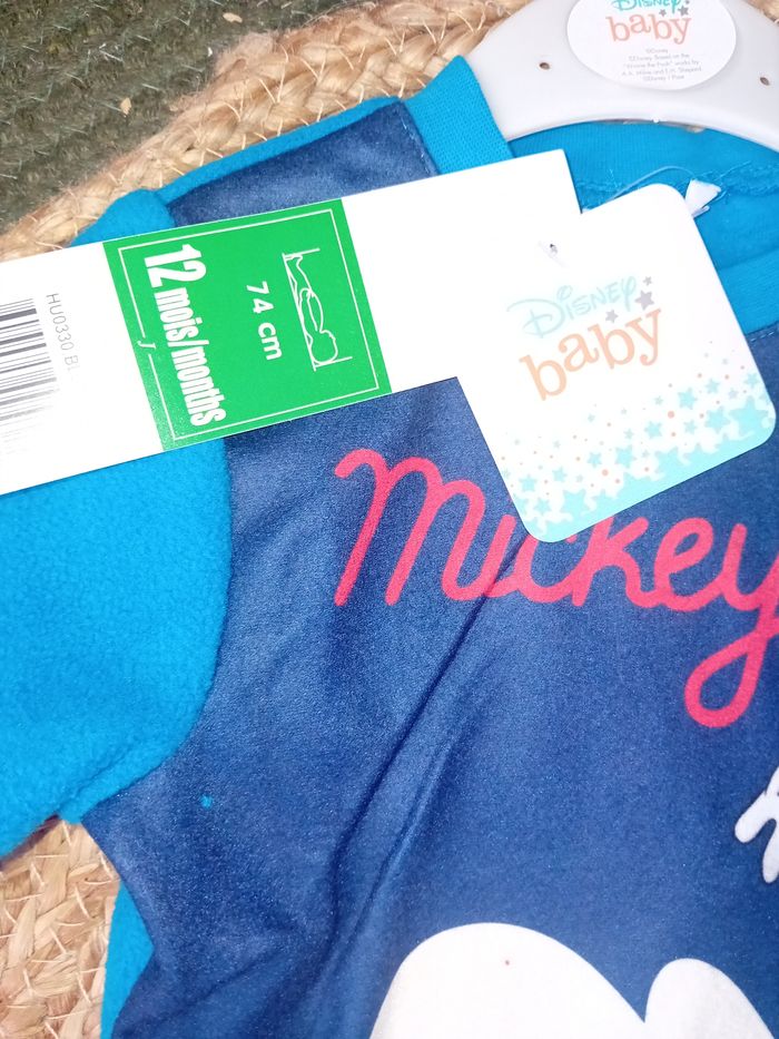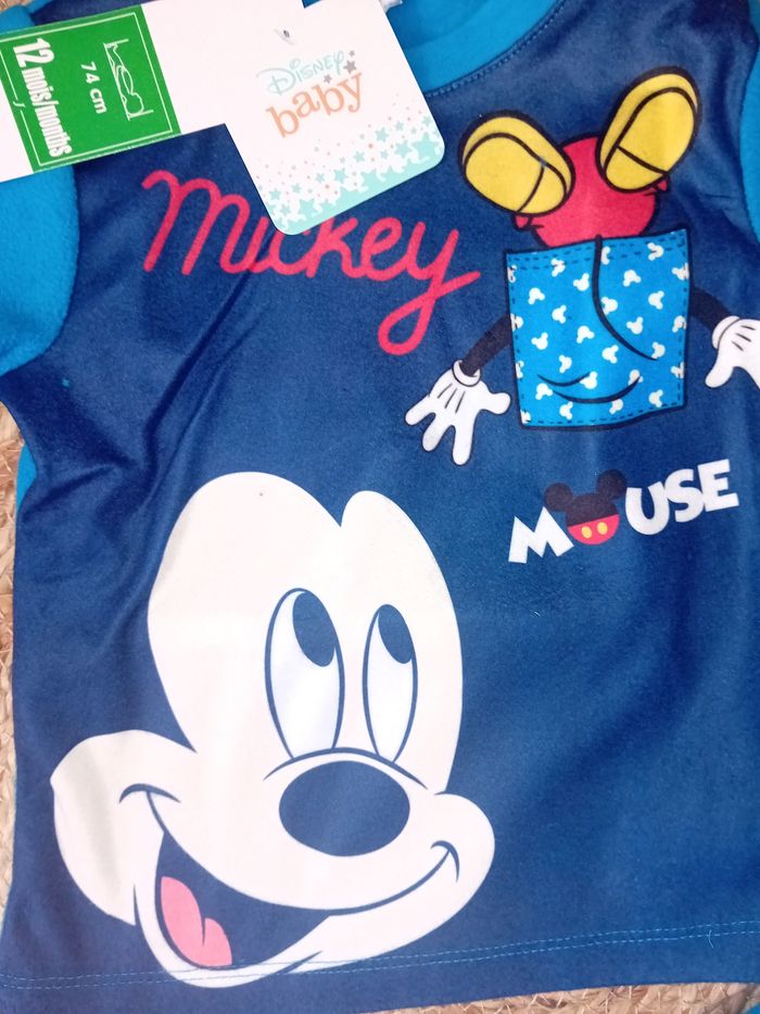 Pyjama 2pieces polaire Disney Mickey Haut + bas Taille 12mois 100% polyester Neuf avec étiquette