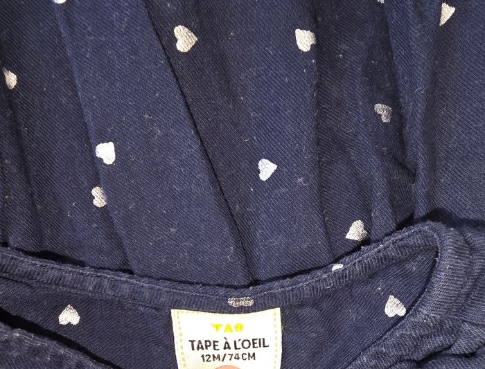 Robe a manche longue, couleur bleu marine a cœur argentés, intérieur doublé. Marque tape a l'oeil en 12 mois. Remises sur lots activé ✅️ De plus, moins de frais de livraison 🪙📦 Envois rapide et soigné ! 🚚