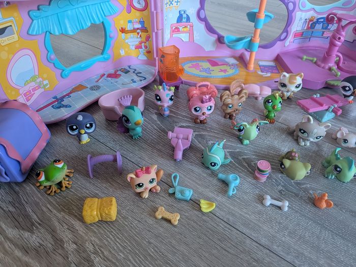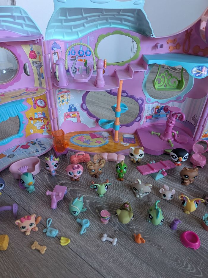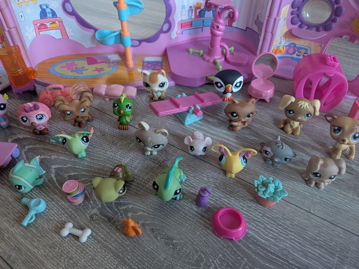 Joli lot petshop composé de la salle de sport, 22 figurines et plus de 20 accessoires Lot en bon état général, a servi durant de nombreuses heures de jeu donc évidemment pas neuf, petites traces. Vendu tel que sur les photos.
