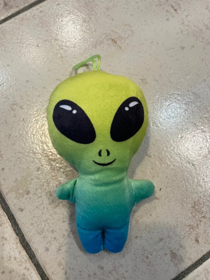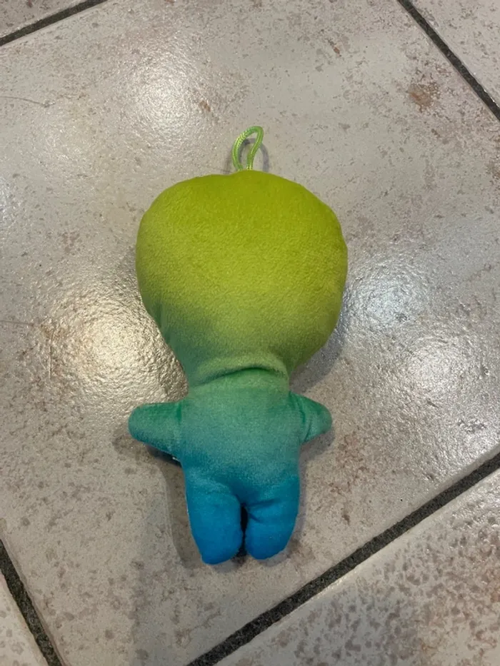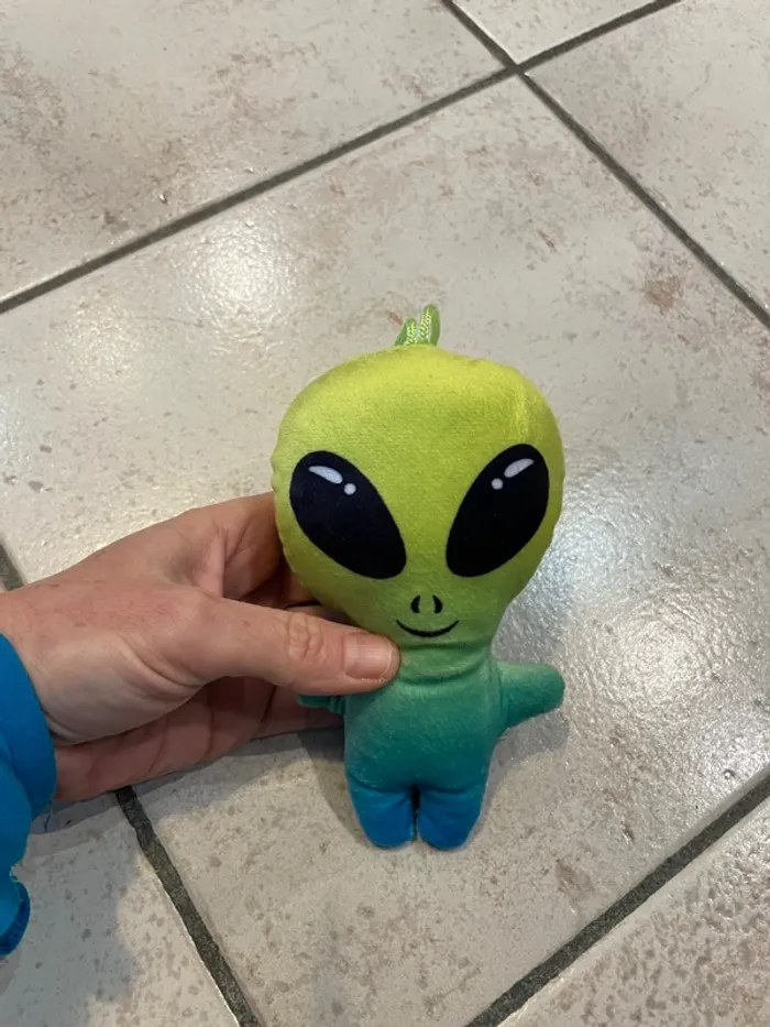 Petite peluche extra terrestre Voir la taille par rapport à ma main Elle sort de la machine à laver.