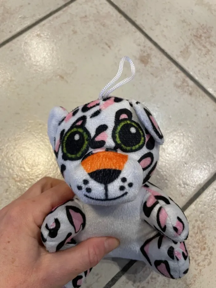 Peluche Tigre ou léopard Voir la taille par rapport à ma main Elle sort de la machine à laver.