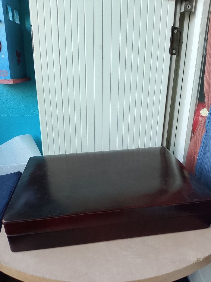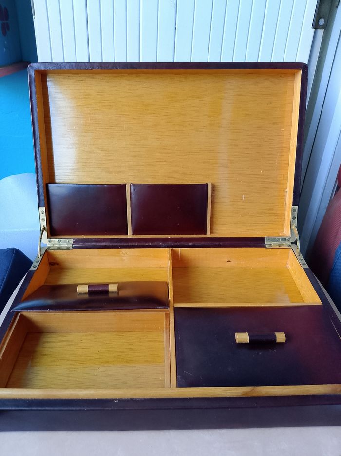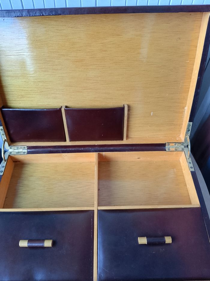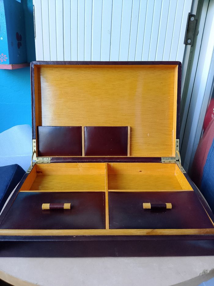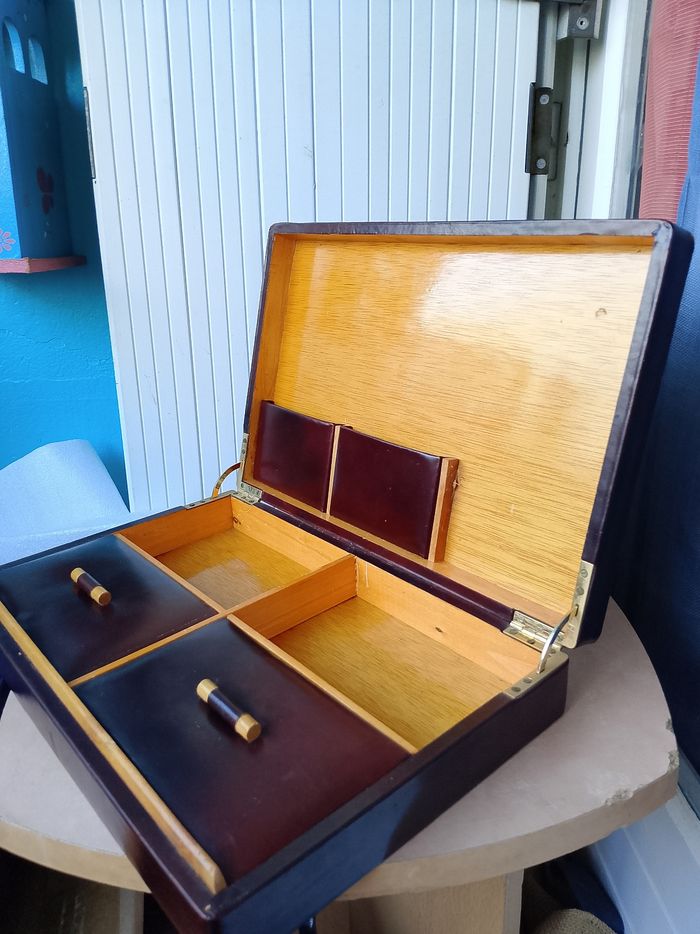 Ancienne cave à cigares en bois et cuir - photo numéro 1