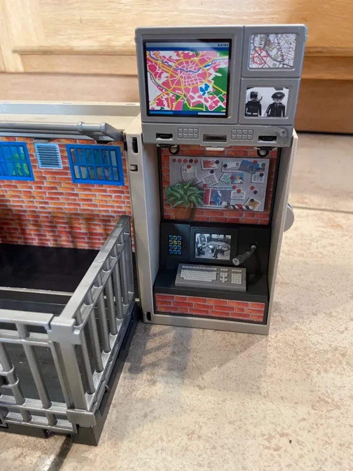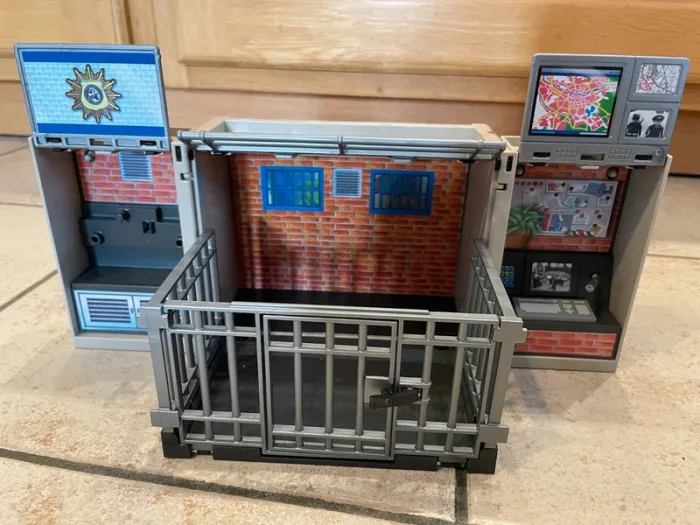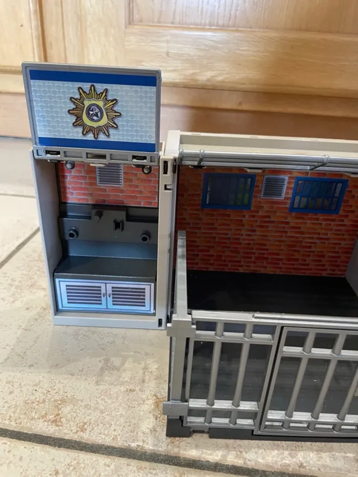 Petite prison / petit commissariat Playmobil city action 5421 Mon fils a adoré ce jouet et on pouvait le transporter facilement (idéal à emmener au restaurant pour s'occuper par exemple) Il y a une petite clé en plastique pour le verrouiller et le déverrouiller. Je ne sais pas si il est complet? On l'a toujours eu comme ça. Vendu tel que sur les photos.