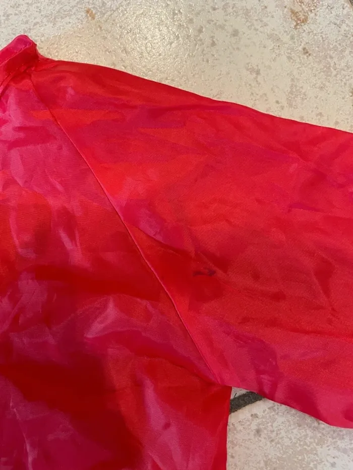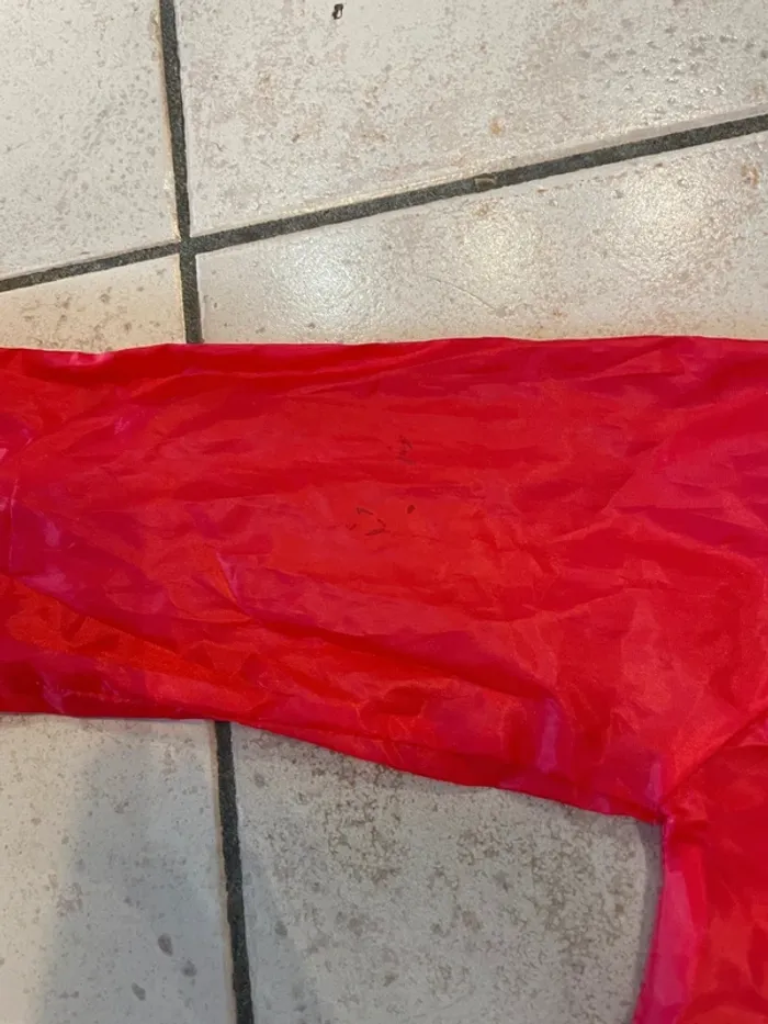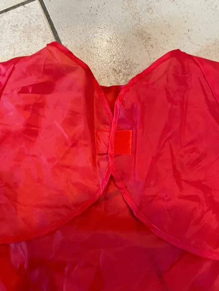 Petit ablier en plastique pour la peinture ou autres activités salissantes. Matière fine. Taille indiquée 110/128 mais je ne suis pas sûre que ça corresponde à la taille en cm? Mon fils l'a porté plutôt autour de 4-5 ans. Se ferme avec un scratch dans le dos Peu porté mais tout de même quelques taches visibles en photo.