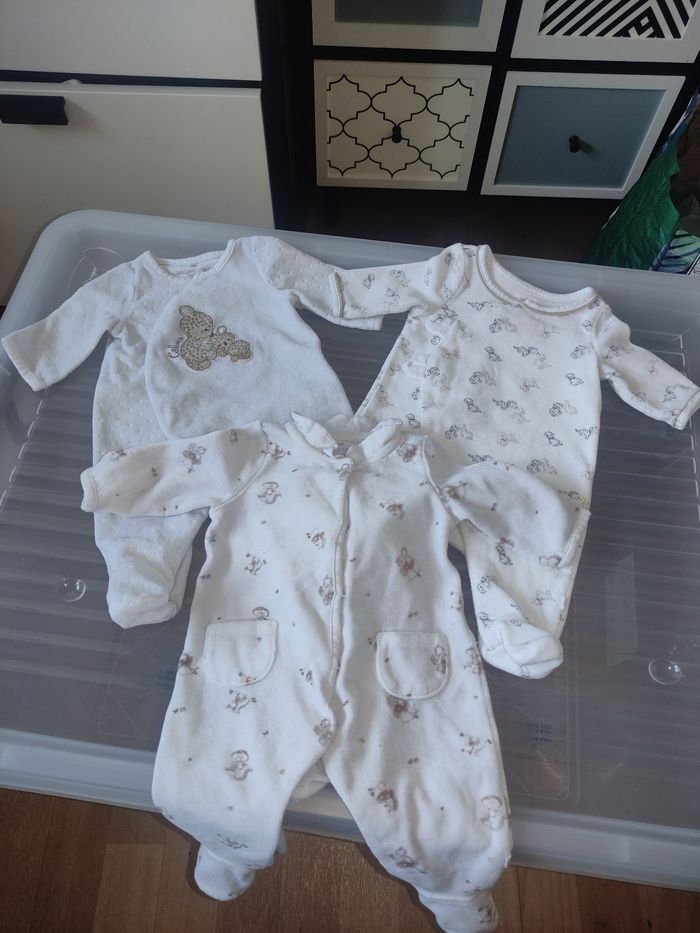 Lot de 3 pyjamas polaires avec ouverture sur le devant taille naissance couleur blanc et gris Mixte D'autres lots de différentes sur disponibles dans mon dressing