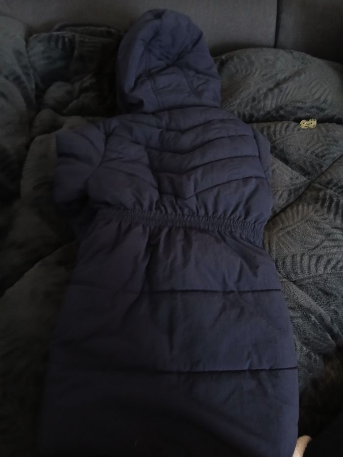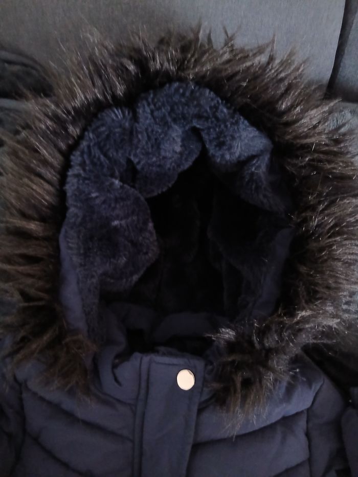 Manteau d'hiver à capuche, noté 5ans mais taille 4ans, bleu marine,fermeture et pressions ,2 poches .