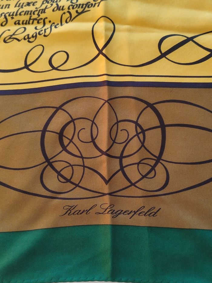 Foulard en soie Karl Lagerfeld jaune, kaki, vert foncé et noir - photo numéro 3