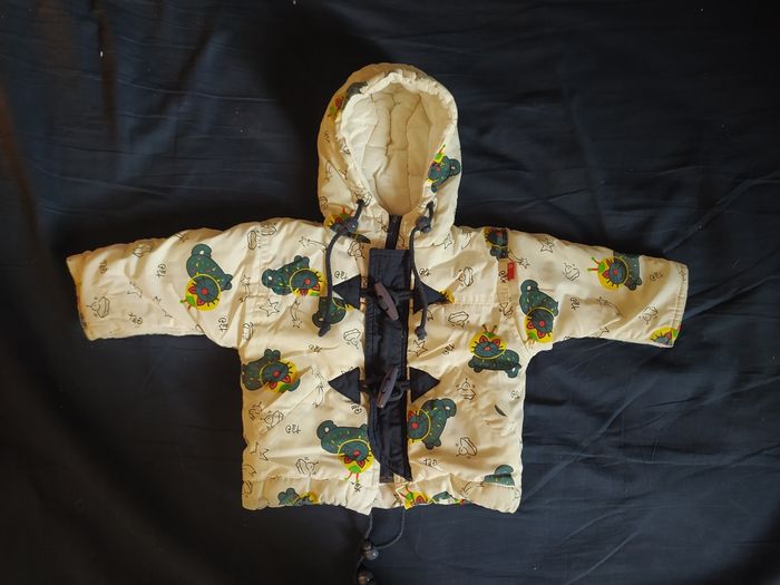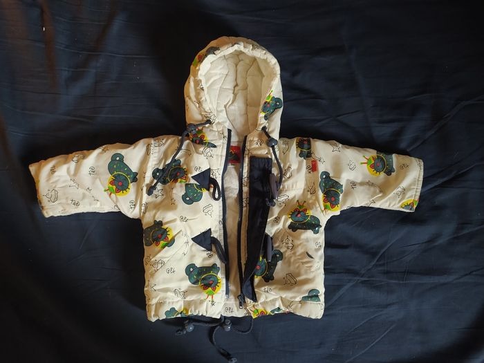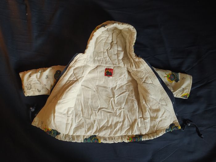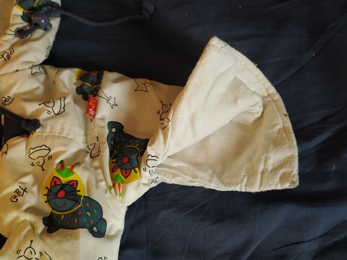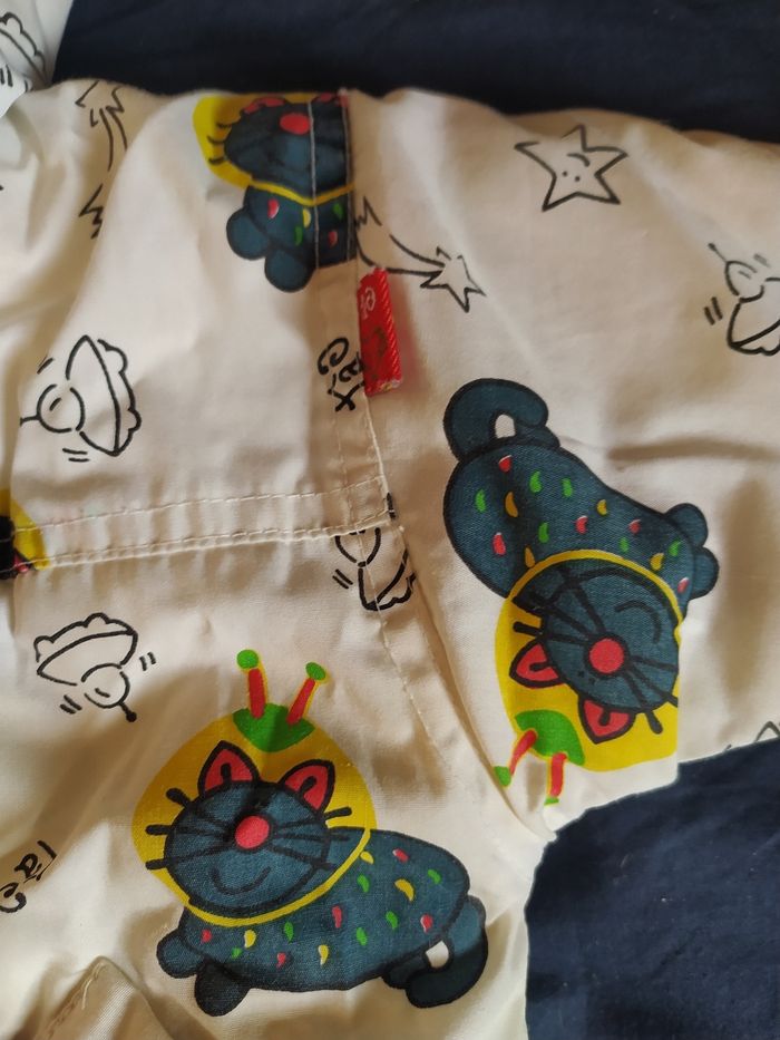 ⚠️ envoi à partir de 5€ d'achat ⚠️ Manteaux Chat taille: 3 mois longueur épaules à bas du ventre: 30 cm marque: TàO couleurs: écru avec motif chats spationautes bleus grande fermeture éclair et 2 attaches, capuche, cordons de serrage à la capuche et à la taille, j'ai ouvert les manches pour bien positionner les bras, extérieur et doublure en 35% coton et 65% polyester, matelassage 100% polyester, bien chaud Bon état (Mini bouloches sur l'intérieur blanc) ⚠️ envoi à partir de 5€ d'achat⚠️