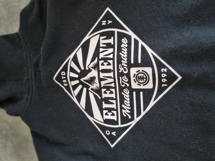 Gilet de marque " Élément " Uni noir Petit flocage sur le devant Fermeture Éclair Capuche avec cordon de serrage 2 poches sur le devant Gros flocage dans le dos 60% polyester 40% coton Taille S Très bon état À retirer sur place ou frais de port à votre charge Pour voir d'autres affaires : #fred5129_gilets_blousons_vestes Pour voir d'autres affaires : #fred5129_taille_s