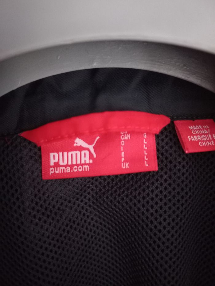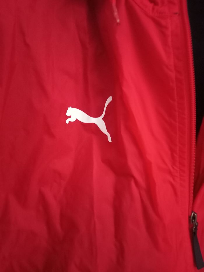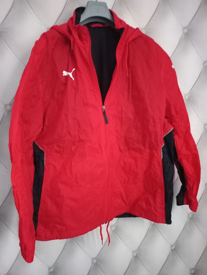 Imper coupe vent Puma, taille L, peu porté 2 poches coté qui ferment par zip, logo poitrine et haut de manche gauche ainsi que bas de manche droite, capuche qui se range dans le col, cordon de serrage base et capuche Mesures Largeur sous bras : 60 cm Hauteur : 75 cm