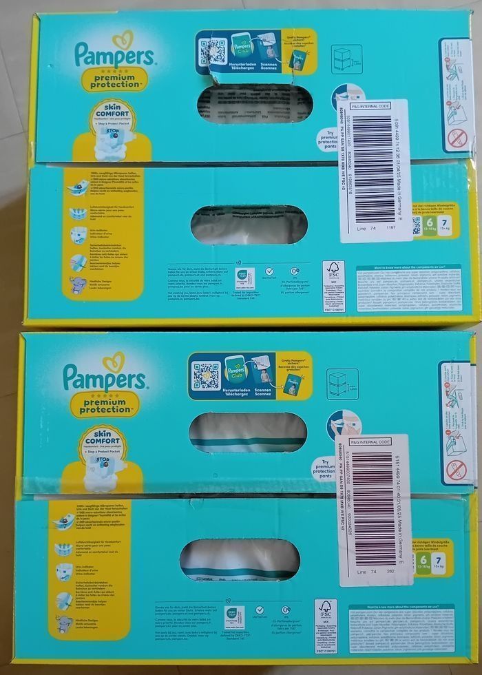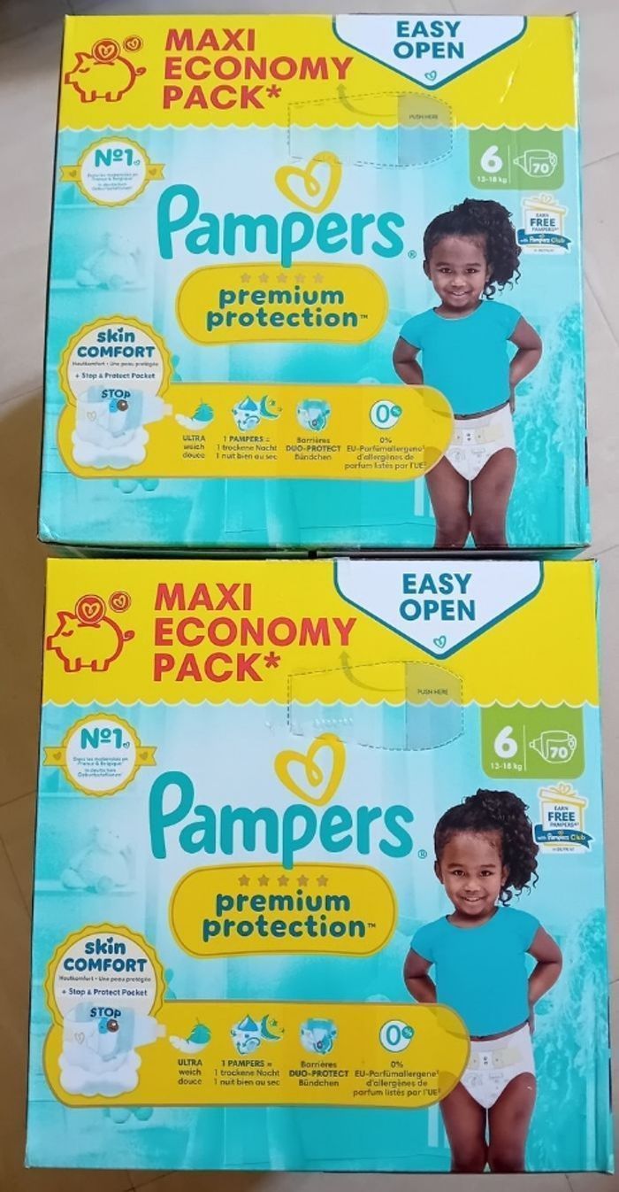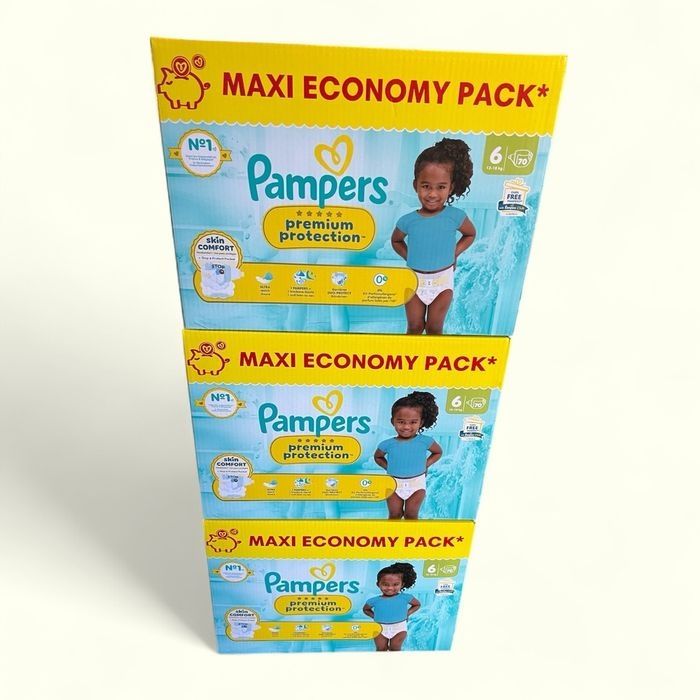 Pampers Premium Protection taille 6 Maxi Economy Pack 70 couches 3 cartons = 210 couches Envoi très rapide et soigné ☺️
