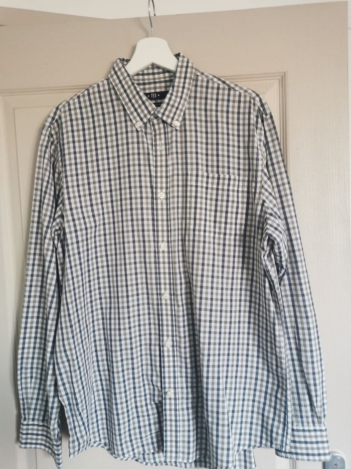 Chemise homme taille XL en coton, confortable et facile à porter au quotidien. Sa coupe classique convient à toutes les morphologies. Motif à carreaux fins formés par des lignes bleues et grises, sobre et élégant. Présence d’une poche sur la poitrine gauche. ✔️ Matière naturelle : coton ✔️ Coupe droite / classique ✔️ Motif carreaux fins ✔️ Coloris bleu et gris ✔️ Poche poitrine gauche Idéale pour le travail, les sorties ou un style casual chic.