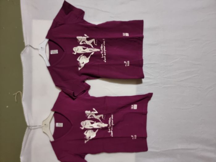 Lot de 2 t-shirts femme Sol's Lady prune imprimés à paillettes taille M. En très bon état. Envoi rapide et soigné. Négociable.