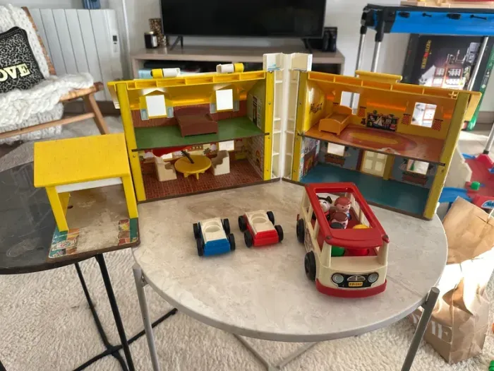 Je vends cette maison vintage Fisher Price en bon état. - Âge recommandé : De 4 à 6 ans - Composition du lot : Maison de poupée avec plusieurs pièces et accessoires État satisfaisant, quelques traces d'usure mais la maison est toujours en bon état de fonctionnement. N'hésitez pas à me contacter pour plus d'informations ou de photos. Ce jouet vintage fera le bonheur d'un enfant !