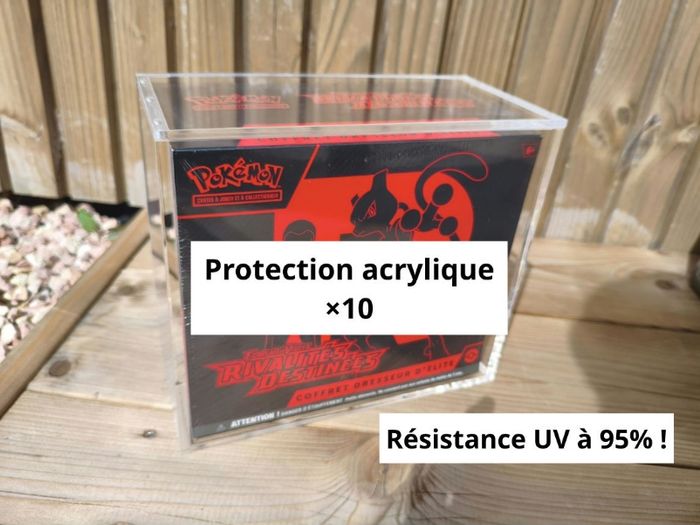 Présentoir Transparent en Acrylique pour Cartes à Collectionner Exposez et protégez vos cartes comme un pro ! Ce boîtier haut de gamme: Protège vos coffrets des UV, de la poussière et des chocs. S'ouvre facilement grâce à son système magnétique. Parfait pour les coffrets dresseur d'elite ETB Pokémon Design transparent élégant pour mettre vos trésors en valeur. Transformez votre collection en véritable vitrine de prestige! Caractéristiques techniques: - 95% de résistance aux UV -6mm+4mm d'épaisseur - Tres haute transparence - Taille intérieure 192*90*168 Coffret Pokemon NON INCLUS