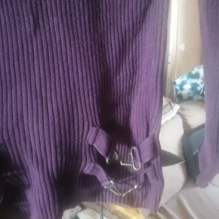 🌸Pull violet peplum côtelé col cheminé et fantaisies en métal "Liberto" Taille 36 🌸 - photo numéro 6