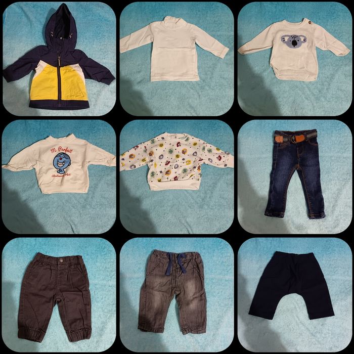 Gros lot de bébé garçon en 3 mois. Tout en très bon état, plus de 70 vêtements. Je fais le lot 65€ , possibilité d'acheter a l'unité a 1€ piece.