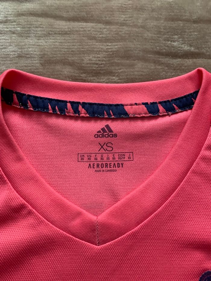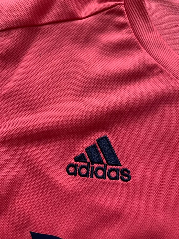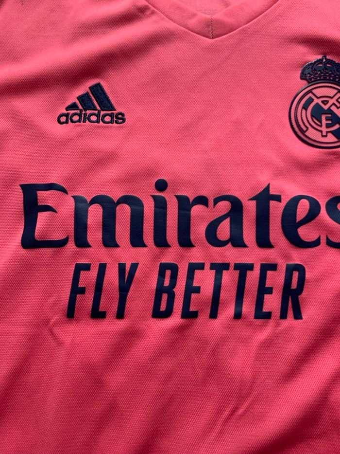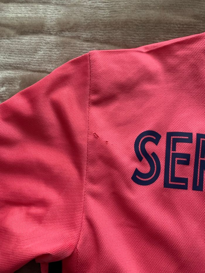Je vends ce maillot de football Adidas di Real Madrid, avec le numéro 4 et le nom Sergio Ramos imprimés Un léger trou est présent près de l’épaule rien de méchant et peu visible - Type de produit : Maillot de football - Marque : Adidas - Équipe : Real Madrid - Joueur : Sergio Ramos - Numéro : 4 - Couleur : Rose / Fuchsia - Taille : XS Maillot authentique Envoie rapide et soigné N'hésitez pas à me contacter pour plus d'informations ou de photos.