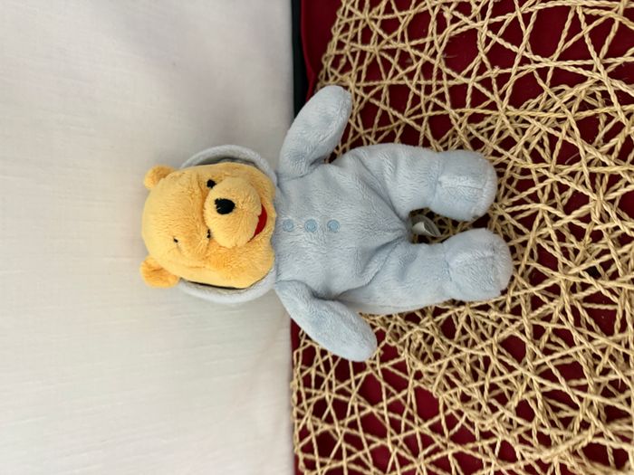 DISNEY DOUDOU OURS WINNIE L'OURSON JAUNE HABIT BLEU CAPUCHE - photo numéro 4