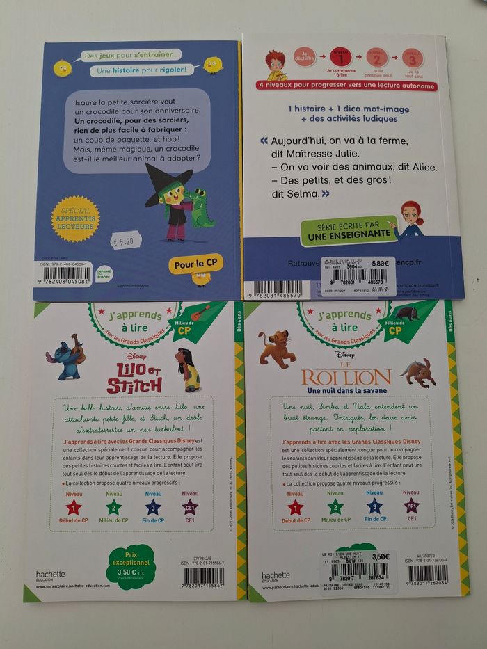 Lot 4 livres niveau CP, en très bon état comme neuf.