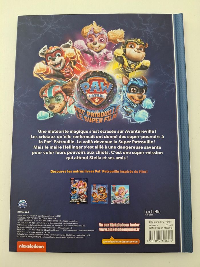 Livre pat patrouille, l'histoire du film, neuf, lu 1 fois.
