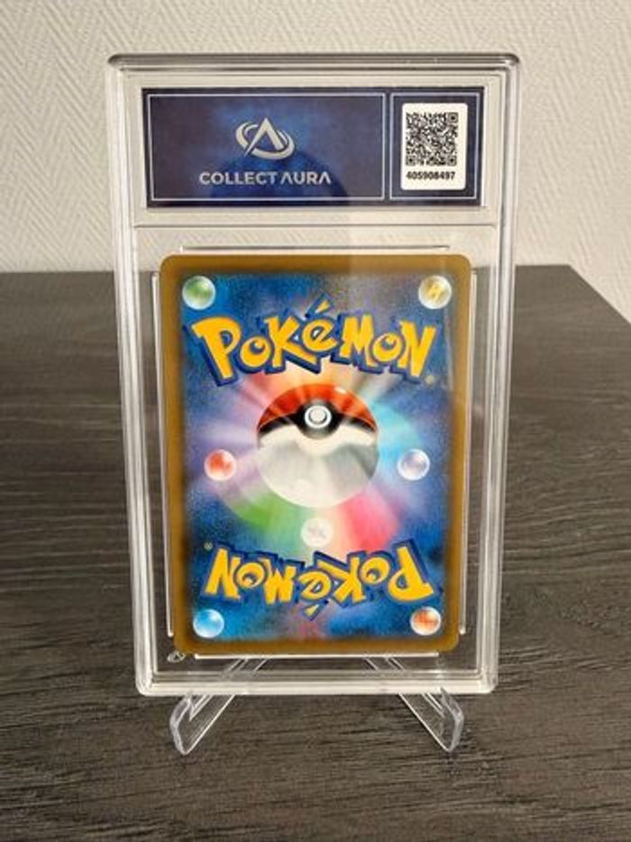 Carte Pokémon japonaise officielle Phyllali V, issue de la série Eevee Heroes (équivalent français : Évolutions d’Évoli). Phyllali est une évolution d’Évoli très appréciée pour son design naturel et sa popularité constante auprès des collectionneurs, notamment dans la série Eevee Heroes, reconnue comme l’une des plus recherchées du JCC Pokémon moderne. Carte gradée par Collect Aura avec la note 9,5 (Mint+), conservée sous protection rigide, idéale pour une collection ou un affichage. Envoi rapide, soigné et parfaitement protégé. Possibilité de remise en main propre. Réf: 98
