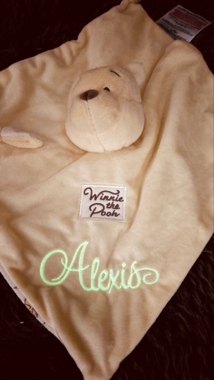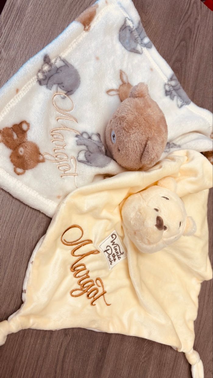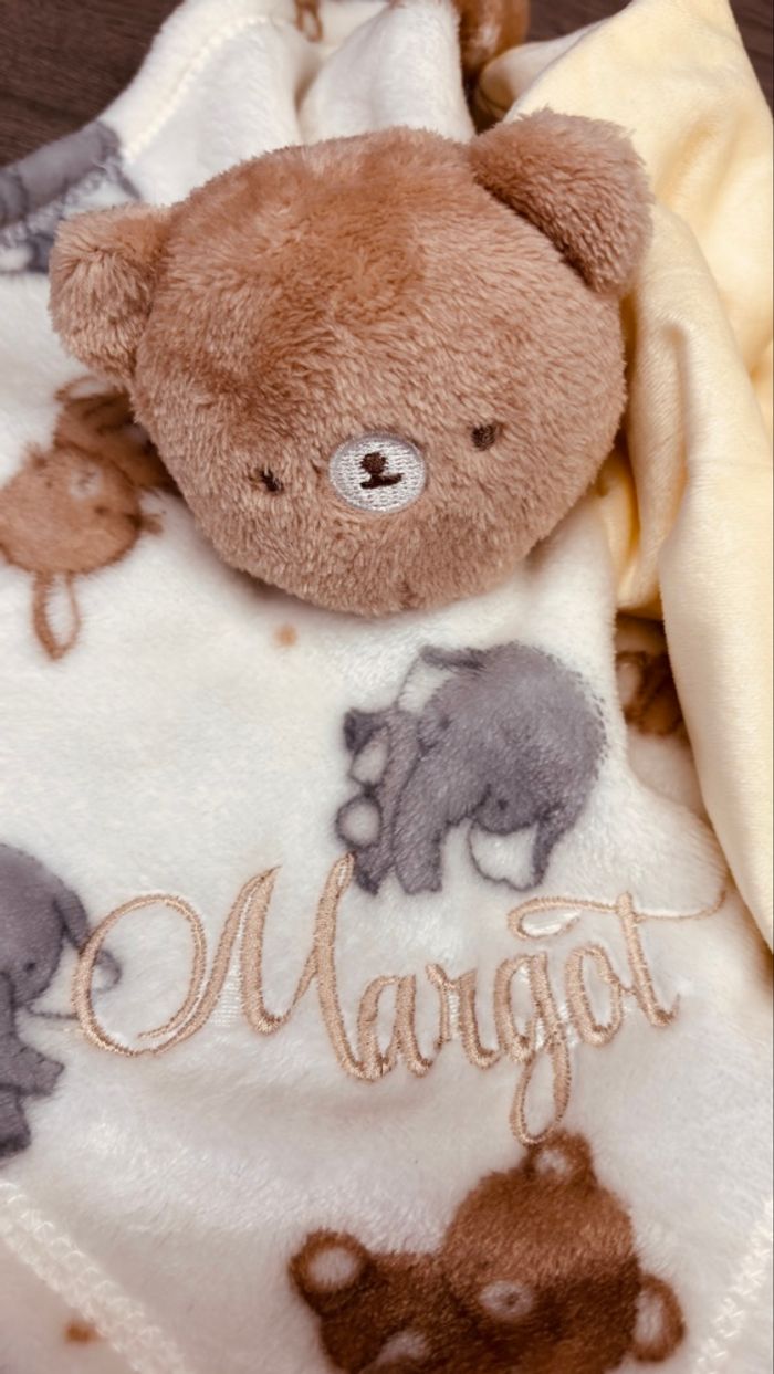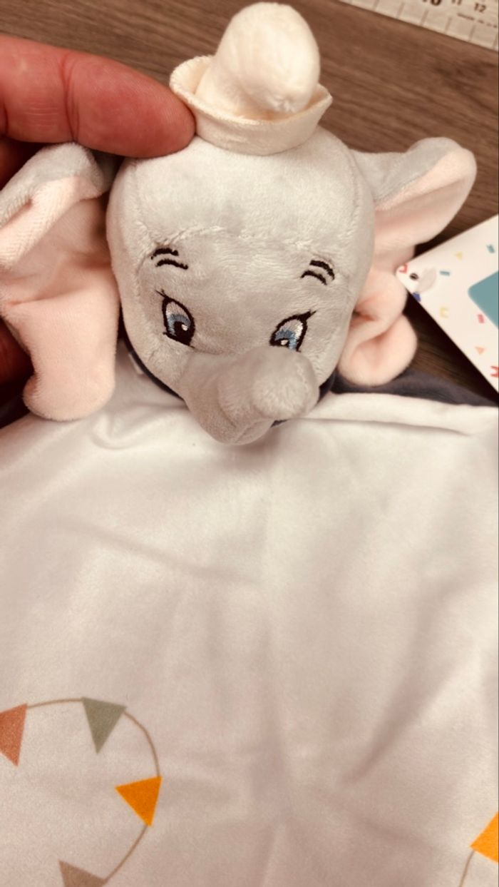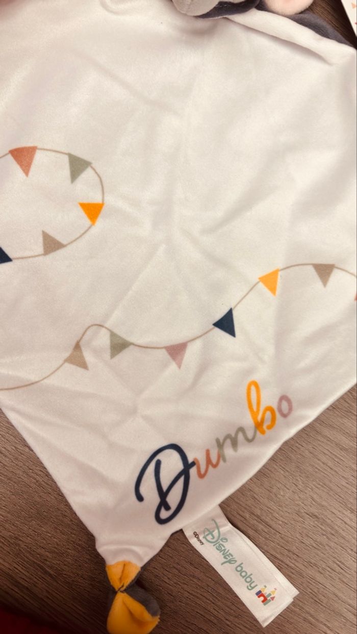 Doudou Dumbo personnalisé avec le prénom de bébé Idéal pour un joli cadeau de naissance Plusieurs couleur de broderie disponible, actuellement possibilité de mettre un fil phosphorescent (idéal pour retrouver doudou la nuit) Le tarif comprend la personnalisation